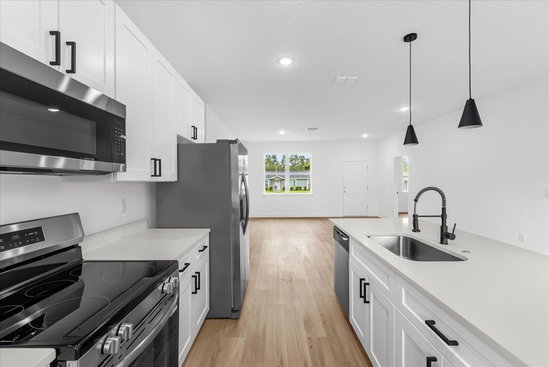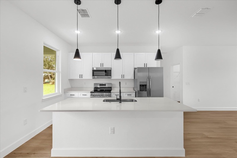 This stunning 4-bedroom home is ready for its first owner. It features a spacious master suite with a tub and a 2-car garage, offering modern, functional living space. Enjoy the new kitchen appliances and cabinets, along with elegant white quartz countertops. The location is fantastic, placing you minutes from a supermarket, main access roads, and the heart of Marion Oaks. With a spacious yard and brand-new construction, this is the perfect opportunity. Schedule a showing today!