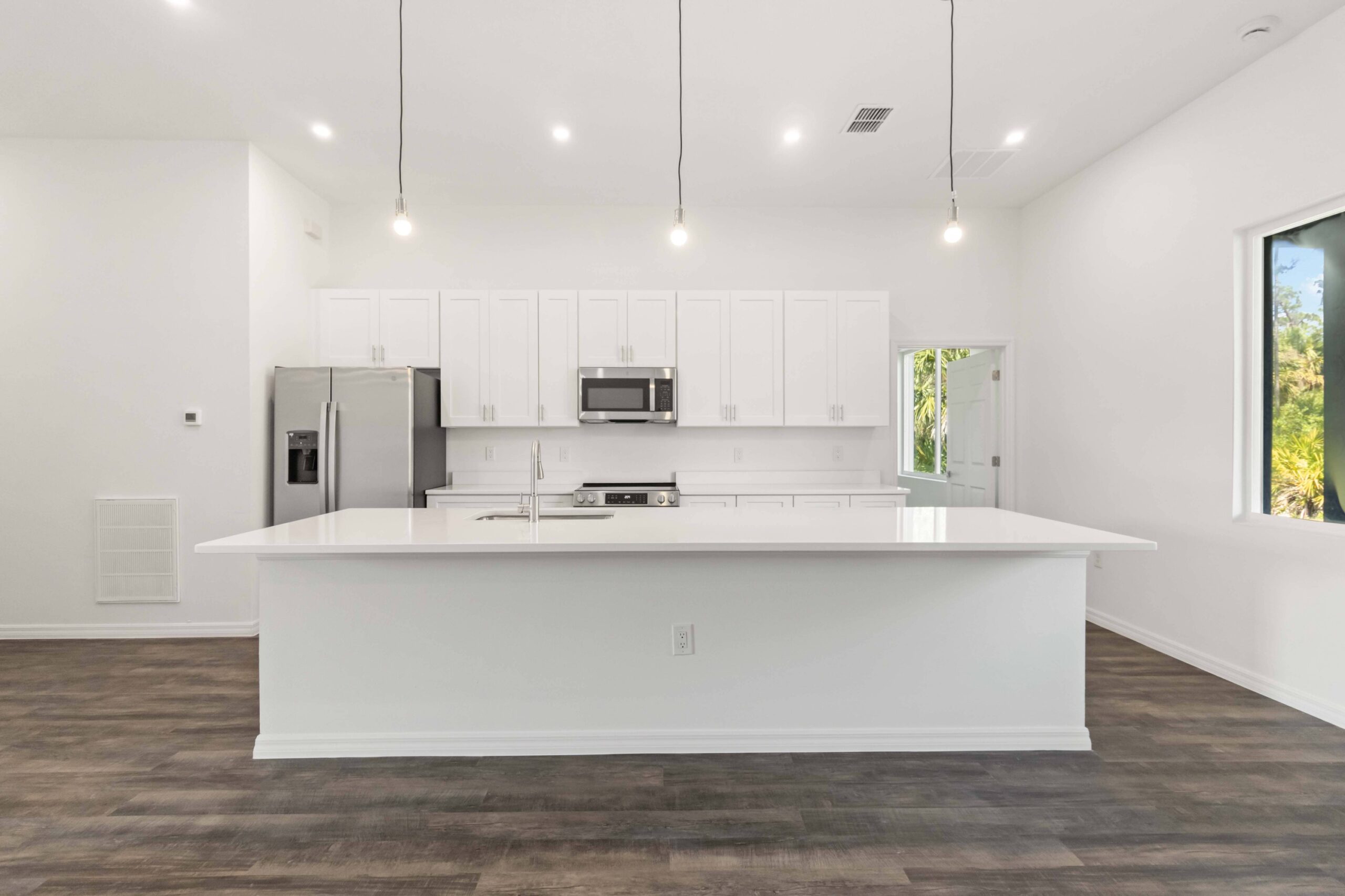 Welcome to your ideal Florida retreat in the thriving community of North Port! This newly built home offers a perfect blend of style, space and modern comfort. Boasting 3 spacious bedrooms, 1 separated home office, 3 beautifully appointed bathrooms, and a separate home office this residence sits on nearly a quarter-acre lot—providing the room and privacy you’ve been looking for. Step inside to discover refined finishes throughout, including luxury vinyl plank flooring, recessed lighting, and abundant natural light pouring in from thoughtfully placed windows. The open-concept living space seamlessly connects to a chef-inspired kitchen, complete with soft-close shaker cabinets, premium fixtures and eye-catching Port White Quartz countertops—ideal for both entertaining and everyday meals. Energy-efficient and cost-conscious, the home is equipped with well and septic systems, helping to keep monthly expenses manageable. The outdoor space offers endless possibilities: envision a lush garden, custom patio or future pool to make the most of Florida’s sunshine. Additional perks include up to $7,500 in closing cost assistance for qualified buyers through an approved lender and peace of mind with a 2/10 Home Warranty from the builder. Nestled in a fast-growing area near top-rated schools, parks, shops and restaurants, this home combines the convenience of city amenities with the tranquility of a quiet residential neighborhood. Thoughtfully designed and move-in ready, this North Port gem is waiting for you to call it home.