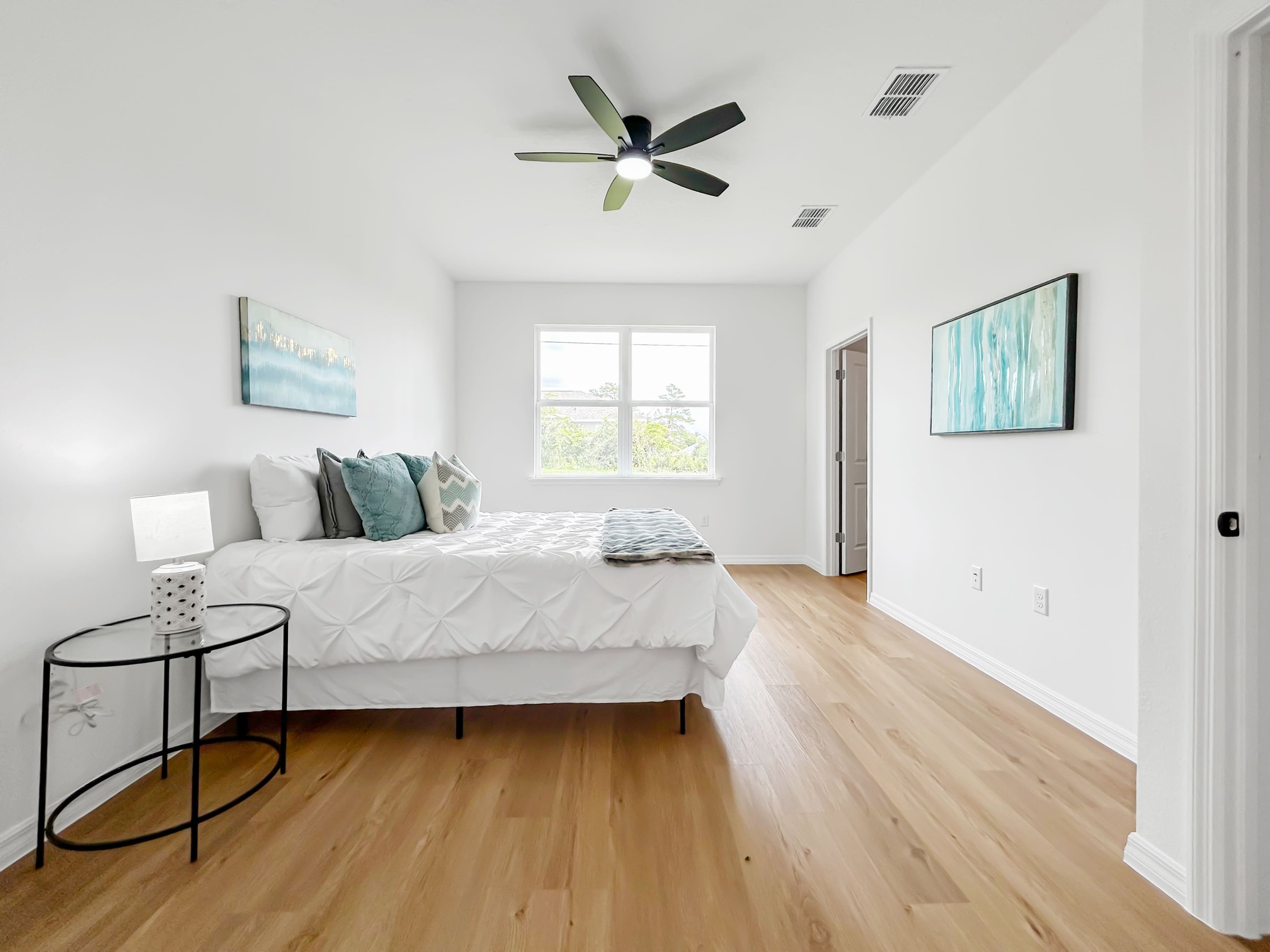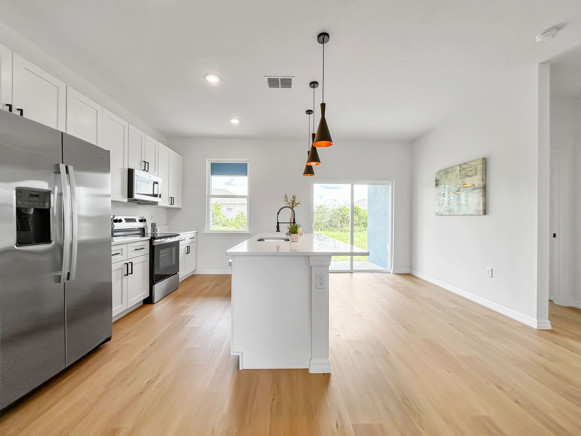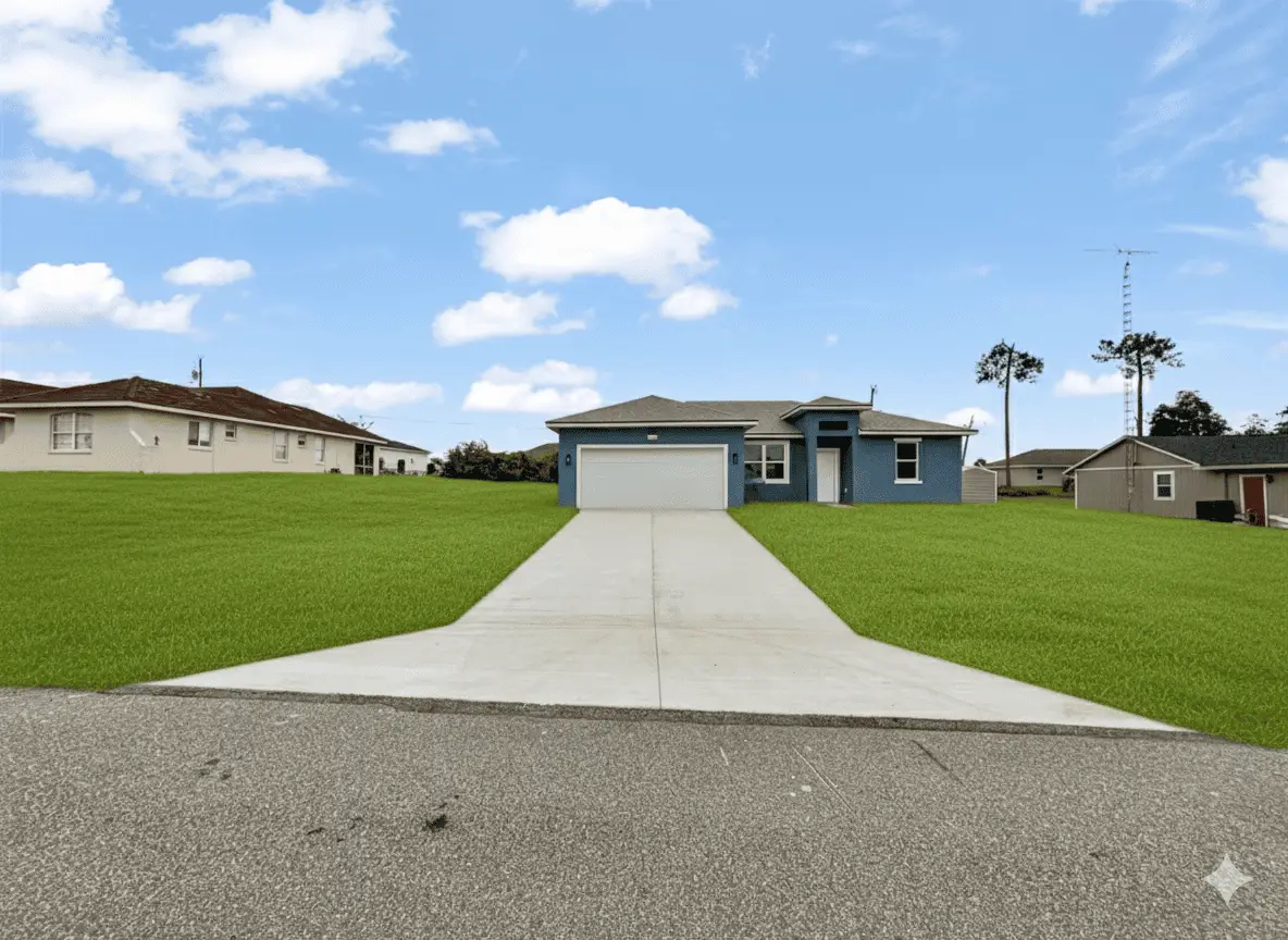Welcome to this brand-new 4-bedroom, 2-bathroom home in the desirable Marion Oaks community of Ocala, FL. This thoughtfully designed residence boasts a split floorplan that creates added privacy for the Primary Suite, while the spacious Great Room serves as the heart of the home with its open and inviting layout. Throughout, you’ll find stunning luxury vinyl flooring and stylish upgraded lighting and fixtures that give the home a modern yet timeless feel. The kitchen is a chef’s delight, featuring sleek port white quartz countertops, stainless steel appliances, abundant cabinetry, and a generous pantry that provides both functionality and style. The Primary Suite is your private retreat, offering a double vanity, a luxurious soaking tub, a walk-in shower, and a private water closet for maximum comfort. Outdoors, the large backyard and covered porch extend the living space, perfect for entertaining or simply relaxing. With no HOA, a septic system, and public water, you’ll enjoy both freedom and convenience. Expertly chosen finishes ensure both beauty and easy maintenance, making this home completely move-in ready. Whether you’re looking for a place to settle down or a stylish new home to start your next chapter, this Marion Oaks gem has it all.